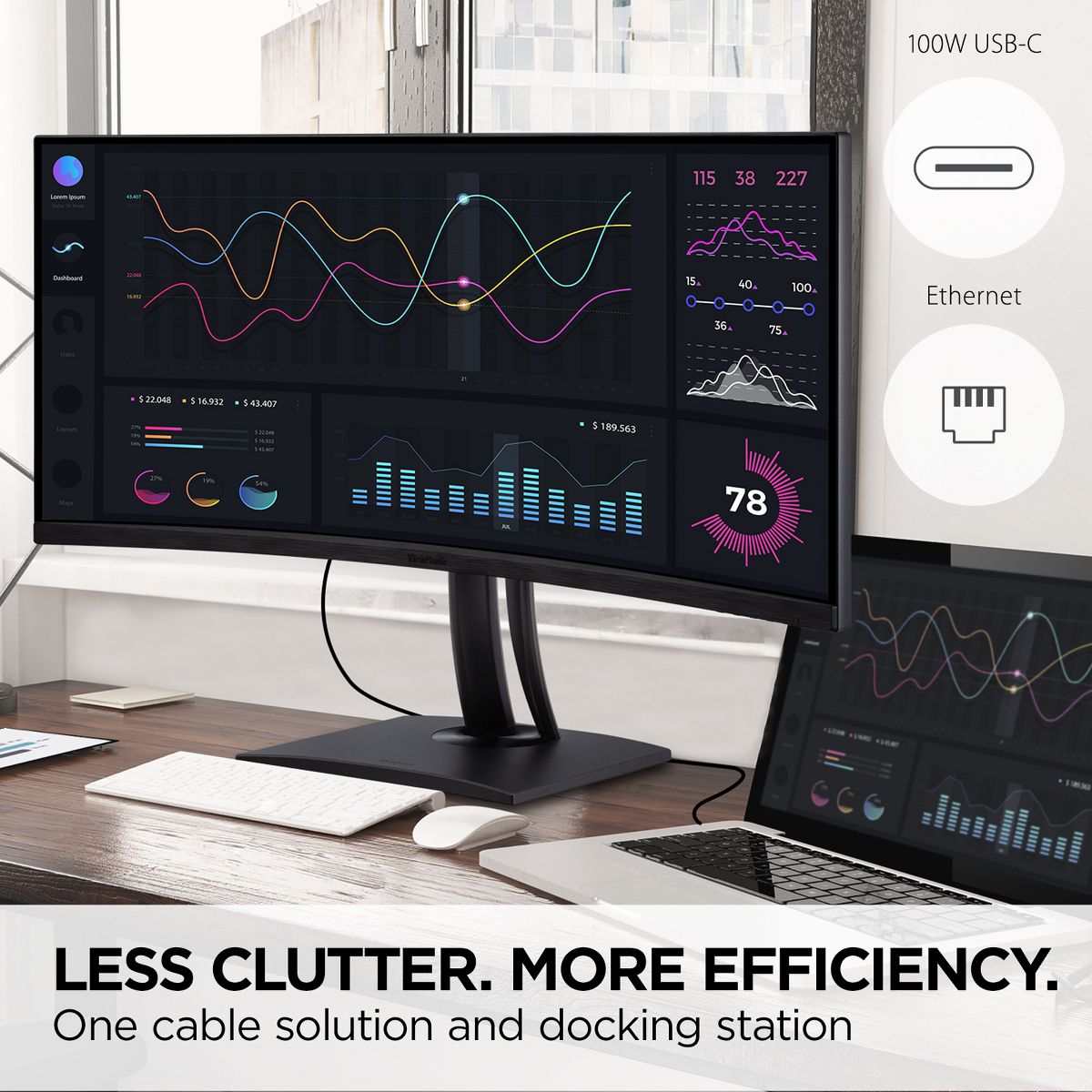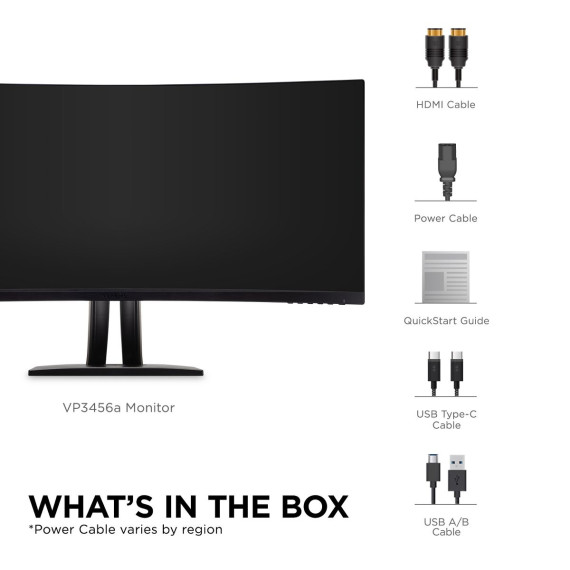 With an immersive curved screen and stunning UWQHD+ 3440x1440 resolution, the ViewSonic® ColorPro® VP3456a monitor elevates your viewing experience from flat to panoramic. Delivering incredible detail and vivid colors across wide viewing angles, this monitor is engineered to provide precise color accuracy. Thanks to an expansive 34” frameless screen, ultra-wide 21:9 aspect ratio, and integrated speakers, this monitor is ideal for video editing, content development, and other color-critical applications. With a sleek and modern design, the VP3456a features a future-proof USB Type-C port with 100W charging, as well as DisplayPort technology, and HDMI. Enjoy reliable network connectivity with the integrated Ethernet port while the integrated USB hub also provides single-cable simplicity for connecting and charging your peripherals and accessories. The VP3456a provides an amazing Delta E<2 value and 99%* sRGB color accuracy for incredible and precise color accuracy. An integrated color uniformity function ensures consistent chromaticity across the screen, while a 14-bit 3D look-up table generates a stunningly smooth palette of 4.39 trillion colors, making it an ideal set-up for photographers, creatives, and designers.