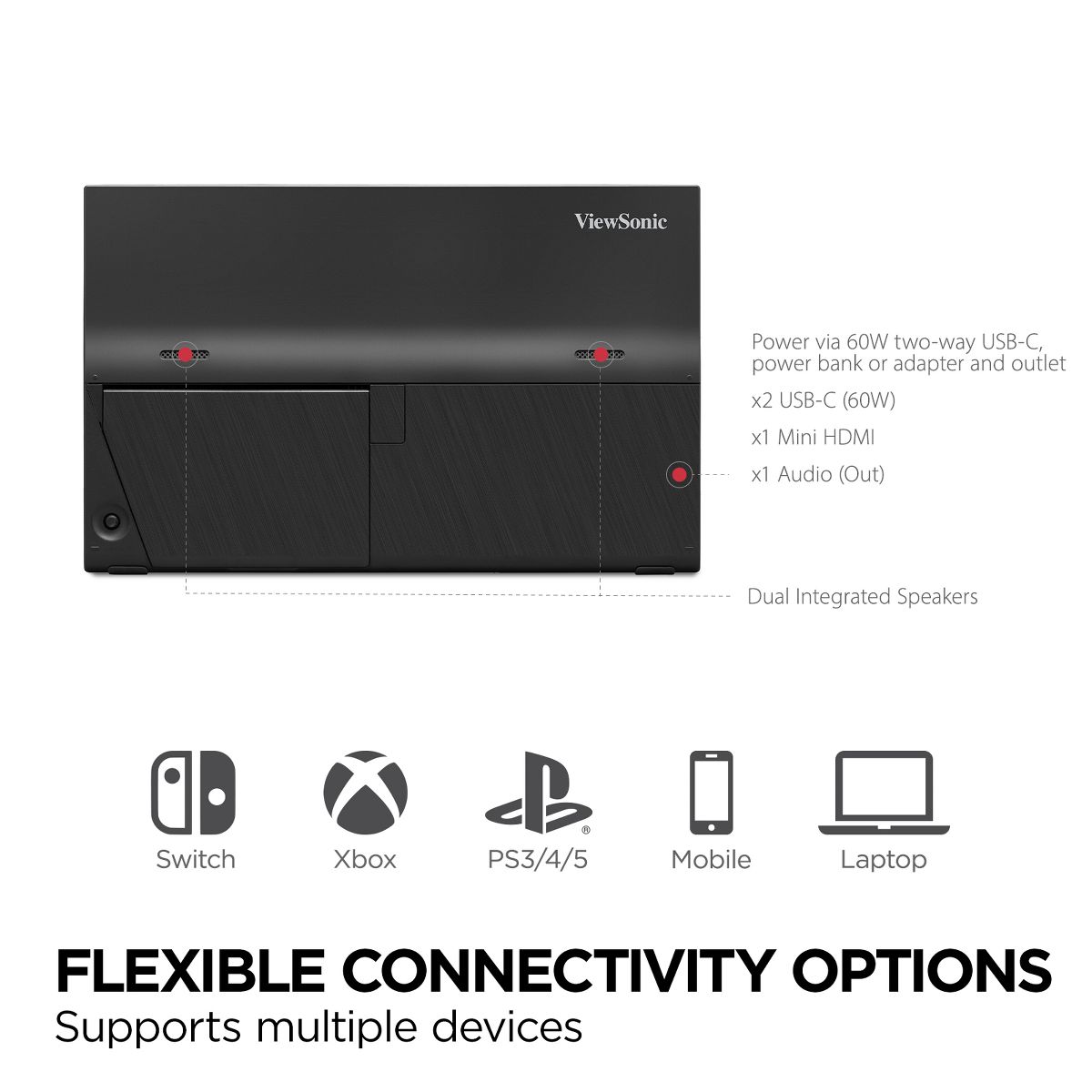 ViewSonic VX1654 16 Inch 1080p Portable IPS Gaming Monitor with 144Hz, AMD FreeSync, 2 Way Powered 60W USB C, Mini HDMI, and Built-in Stand with