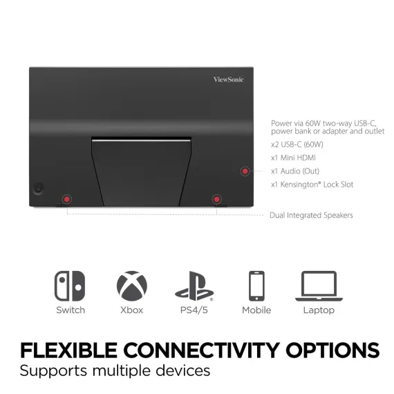 ViewSonic VX1754 17 Inch 1080p IPS Portable Gaming Monitor with 144Hz, AMD FreeSync,2 Way Powered 60W USB C, Mini HDMI, and Built-in Stand with