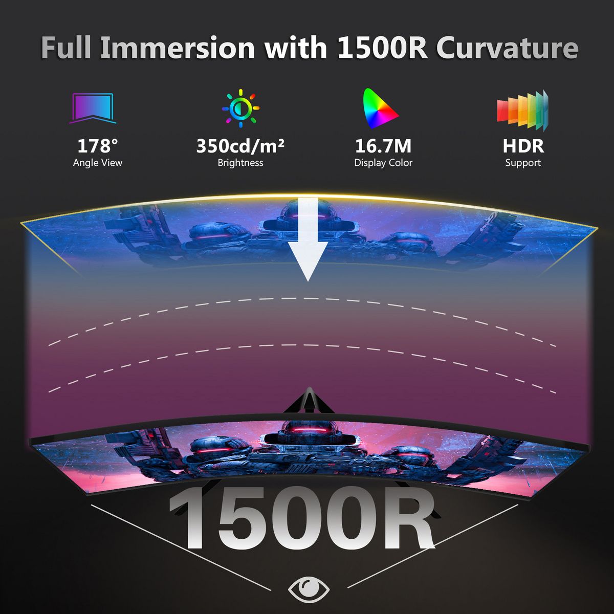 Revolutionize your gaming experience with the 27-In. 1080p 240-Hz Curved Gaming Monitor from Z-EDGE™. Enjoy the ultra-smooth and fluid gaming experience with the faster frame rendering and lower input lag thanks to the rapid 240-Hz refresh rate and 1-ms response time. Premium FreeSync™ technology virtually eliminates the screen tearing, stutter, and input latency, presenting you with an exceptional gaming experience. Flicker-free and low blue light features keep your eyes fresh after prolonged use. The 1500R curved monitor adds an immersive touch, helping to fill the peripheral vision, enlarging the field of view to a greater extent. Enjoy the feeling of being pulled in as your game's world wraps around you. Combined with HDR technology, the display presents you the stunning and crystal clear images with Full HD 1920 x 1080 resolution. HDR will balance exposure during the day and brings greater clarity at night. The 3,000:1 contrast ratio presents the deep blacks and brilliant whites, allowing you to capture more image details even in the dark. 3-sided frameless design makes full use of the screen, bringing a modern and sleek look to this streamlined monitor. Featuring 2 HDMI® inputs as well as 2 DisplayPorts, you can connect multiple devices to the monitor at the same time. DisplayPort™ supports up to an impressive 240-Hz refresh rate, while the HDMI® port performs at up to 144-Hz refresh rate, providing a pro-level gaming experience for users.