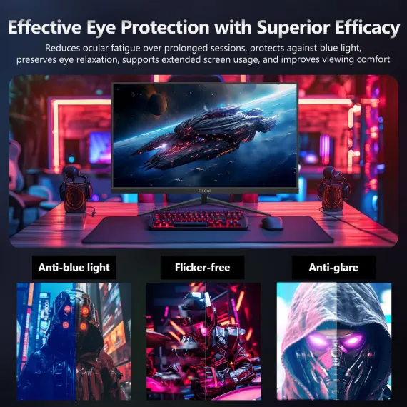 --- flicker-free, anti-glare and low-blue-light features