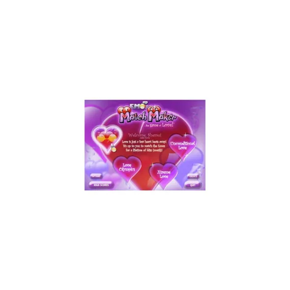 Match adorable love hearts to bring together happy couples. Wedding bells ring and the celebration begins with even more bonus points and surprises! Don't worry about a broken heart. The Love Doctor is on call to help you as each level increases the challenge. Emotions run high in the game of love! Highly addictive and unlimited game play that will entertain the entire family!