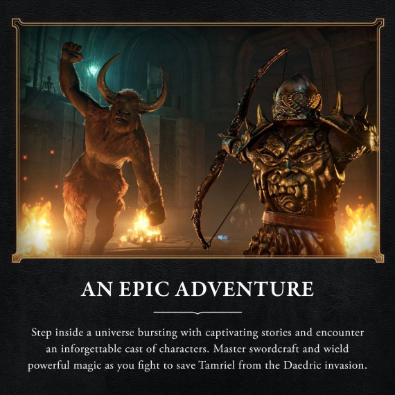 Step inside a universe bursting with captivating stories and encounter an unforgettable cast of characters. Master swordcraft and wield powerful magic as you fight to save Tamriel from the Daedric invasion.