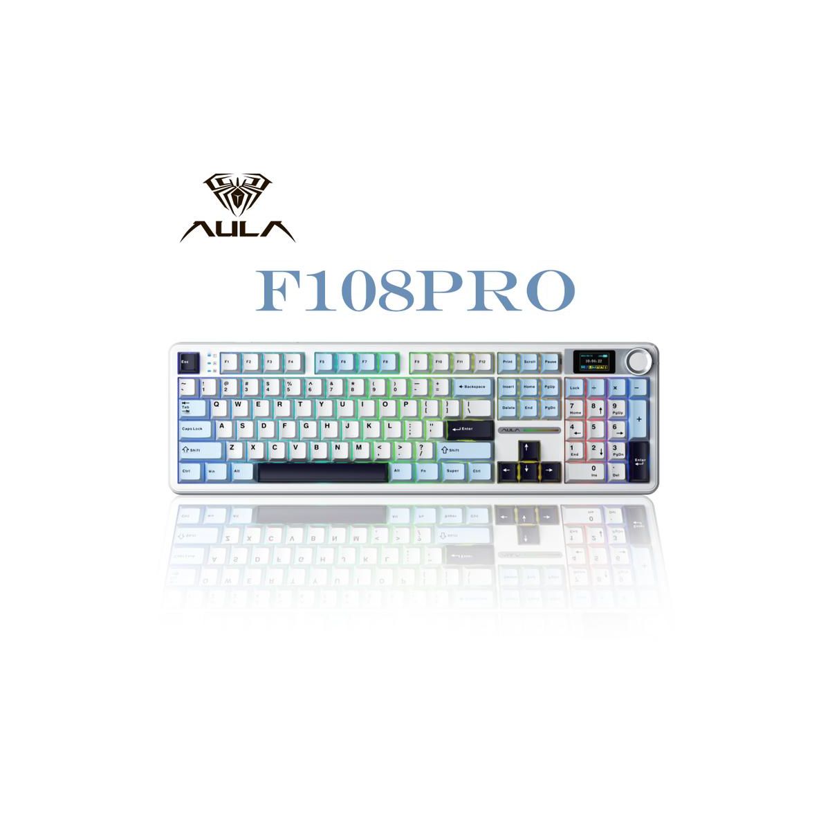 AULA F108 Pro, 104-Key Wireless Hot Swappable Mechanical Gaming Keyboard, RGB, Knob, 8000 mAH Battery, Digital Screen