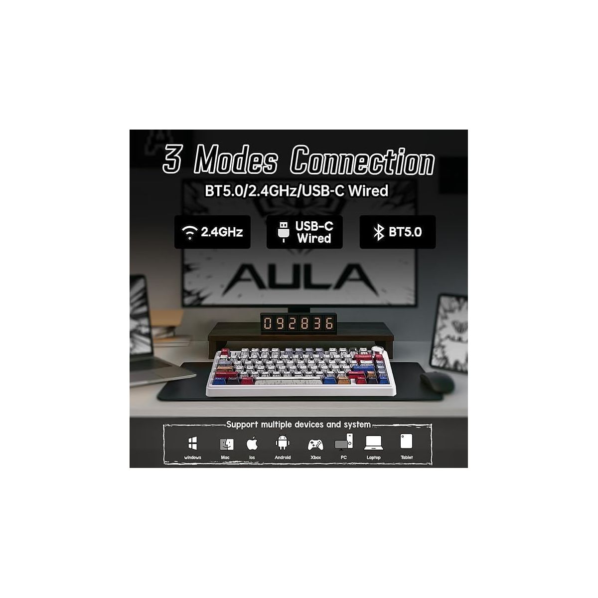 AULA F75 81-Key Wireless Hot Swappable Mechanical Gaming Keyboard, RGB, Knob, 4000 mAH Battery, Normal/ Patterned Keycap