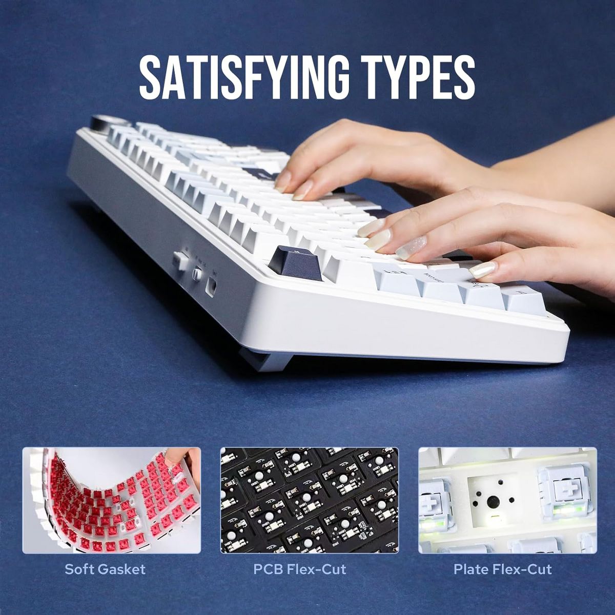Compact F99 Pro with hot-swappable keys, RGB lighting, tri-mode support, and a control knob. Sound dampening layers reduce noise. 8000mAh battery supports long-lasting performance.