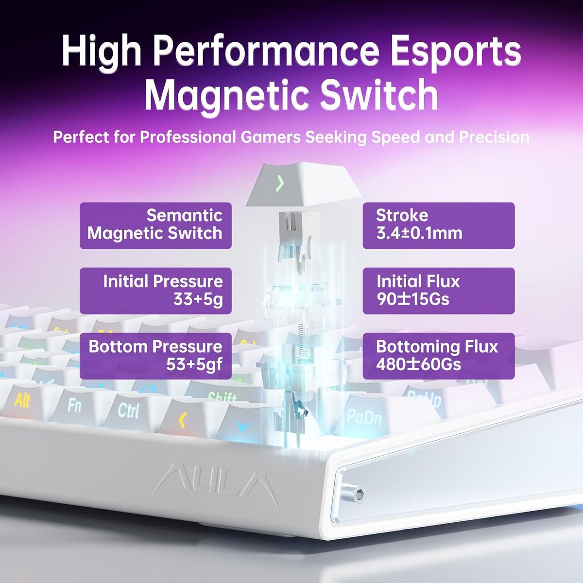AULA Hero68 HE 60-Key Wired Hall Effect Gaming Keyboard, Magnetic Switch, RGB, Rapid Trigger and Response, Adjustable Actuation