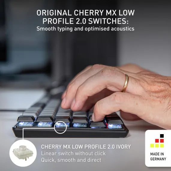 Cherry KC 500 MX LP Mechanical Low Profile Keyboard | Slim Design | White Lighting | PBT Key caps New MX LP 2.0 Switches (Black, TKL)