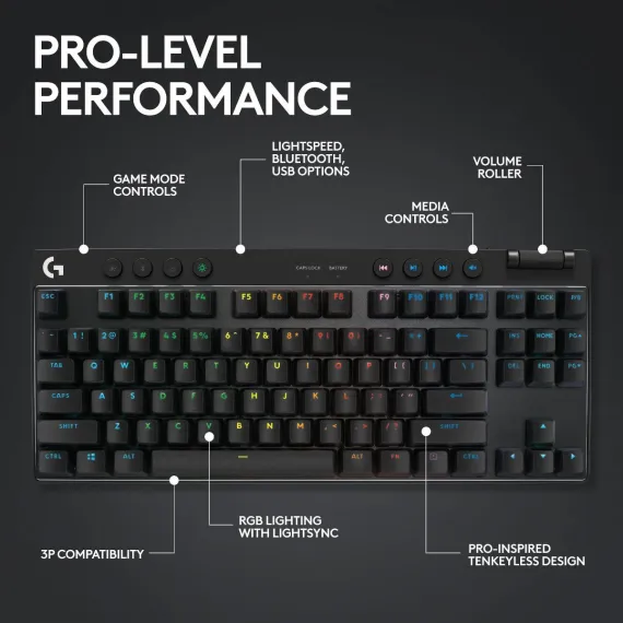 PRO X TKL is the next generation of the Logitech G PRO keyboard. It was designed in collaboration with the world’s best esports players—and engineered to win. PRO X TKL helps players eliminate every barrier between them and the win with the speed and reliability of LIGHTSPEED wireless technology and a sleek, tenkeyless design. It’s been battle-tested, pro-approved, and built to win championships at the highest levels of competition.