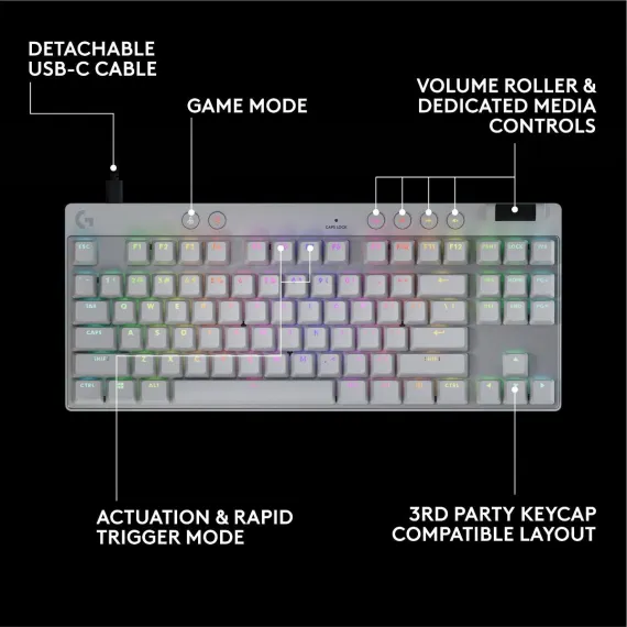 Logitech G PRO X TKL RAPID Tenkeyless Wired Gaming Keyboard, White 920-013132
