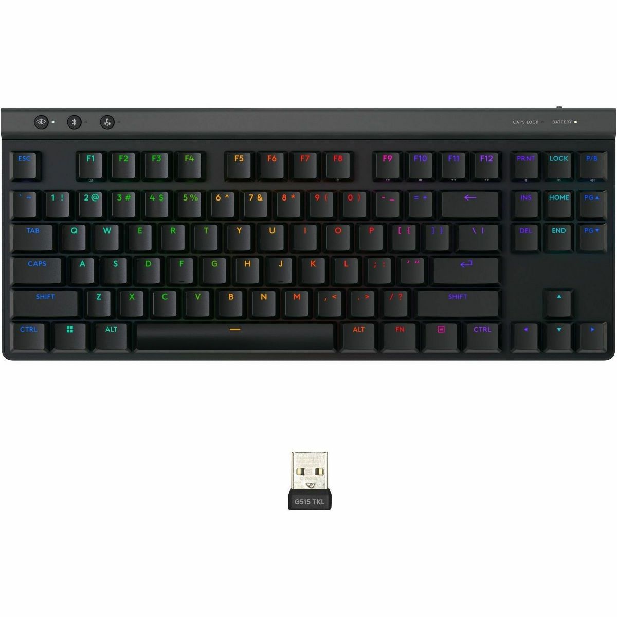 Ultra-thin 22 mm design meets high-performance engineering with Logitech G515 LIGHTSPEED TKL wireless gaming keyboard.Suit your way of play with tri-mode connectivity featuring LIGHTSPEED wireless, Bluetooth, and wired data mode. LIGHTSPEED wireless offers 1 ms report rate and 2:1 pairing with compatible mice using a single USB.Low-profile GL mechanical switches are factory-lubed for faster actuation, available in tactile and linear.Double-shot PBT keycaps and sound dampening layered construction offer durability and accuracy for a superior experience visually and in play.Customize play, create themes and sync other Logitech G gear with LIGHTSYNC RGB in G HUB.Map any key with KEYCONTROL for a personalized command center.