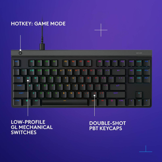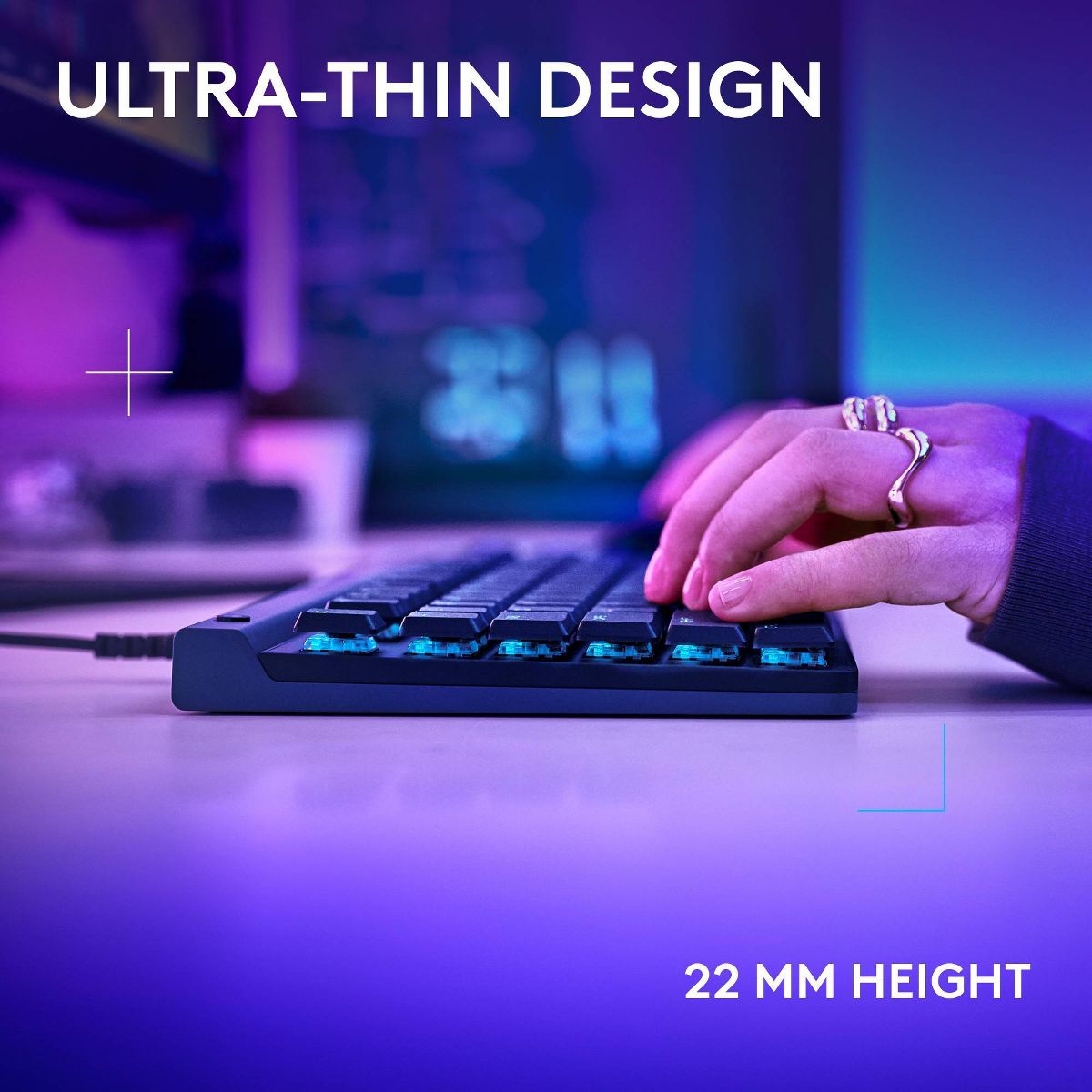 The Logitech G515 TKL gaming keyboard Ultra-thin 22 mm design meets high-performance engineering with Logitech G515 TKL wired gaming keyboard. Low-profile GL mechanical switches are factory-lubed for faster actuation, available in tactile and linear. Double-shot PBT keycaps and sound dampening layered construction offer durability and accuracy for a superior experience visually and in play.Customize play, create themes and sync other Logitech G gear with LIGHTSYNC RGB in G HUB. Map every key with KEYCONTROL for a personalized command center.