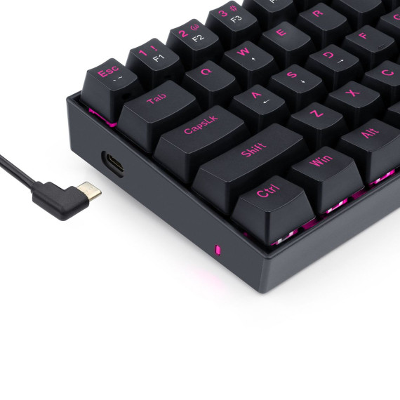 The Redragon K630 Dragonborn compact tenkeyless (TKL) mechanical gaming keyboard is great for both typing and gaming. With brown mechanical switches, you'll experience more accurate typing and noticeable feedback without the "clicky" sound of other mechanical switches. Adjustable pink backlighting with multiple modes allows to you customize the backlighting to match your mood. The K630 is spill resistant, meaning you no longer need to worry about the occasional spill while working or gaming at your desk. The detachable USB Type-C connector provides a higher data transfer rate than a traditional USB connector, and provides out-of-the-box compatibility with a greater number of devices.