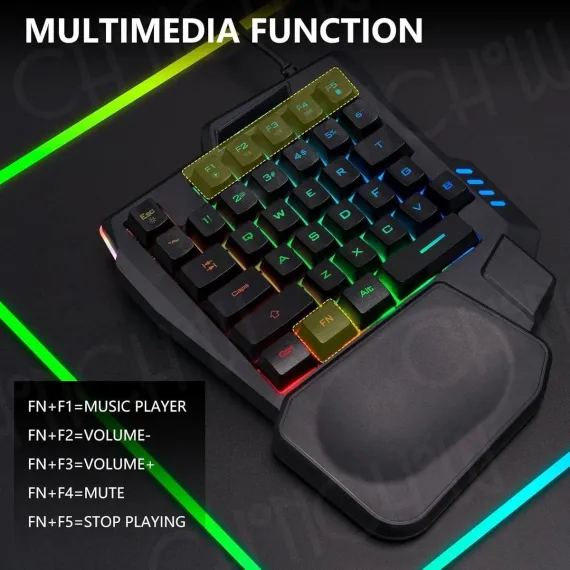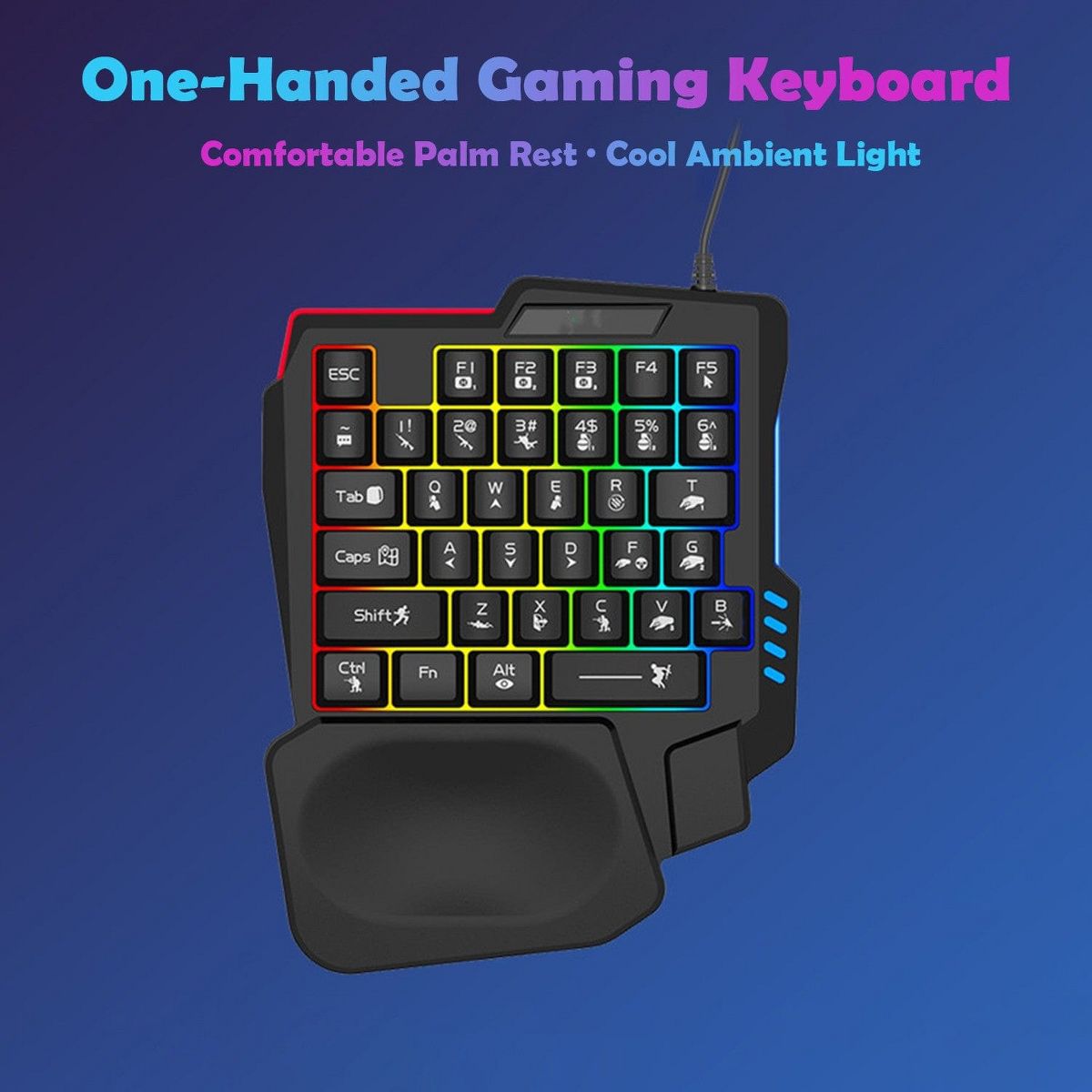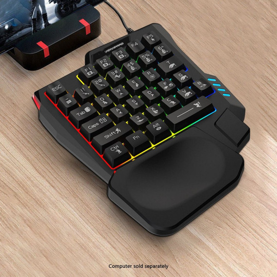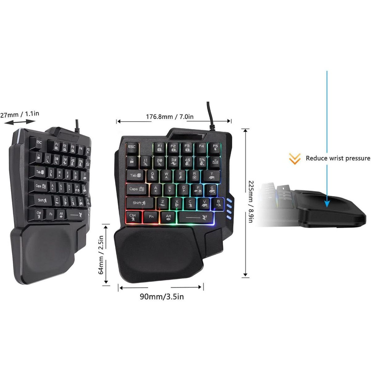 Designed for speed and comfort, the Ultima Series 35-Key Ergonomic Gaming Keyboard delivers responsive control in a compact, one-hand layout. Its LED rainbow backlighting enhances visibility during gameplay, while the integrated palm rest supports the wrist to reduce fatigue. The durable, waterproof build ensures long-lasting reliability, and the USB plug-and-play connection provides quick, easy setup. With an anti-ghosting multi-key system, this keyboard ensures accurate command input for fast-paced gaming.
