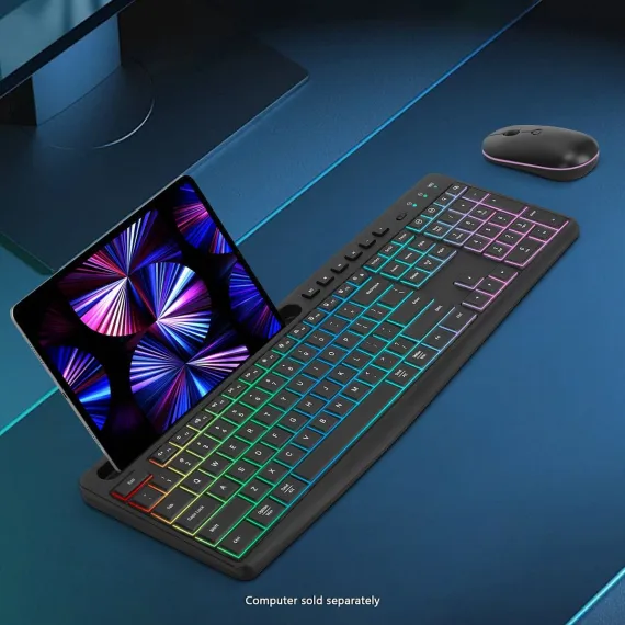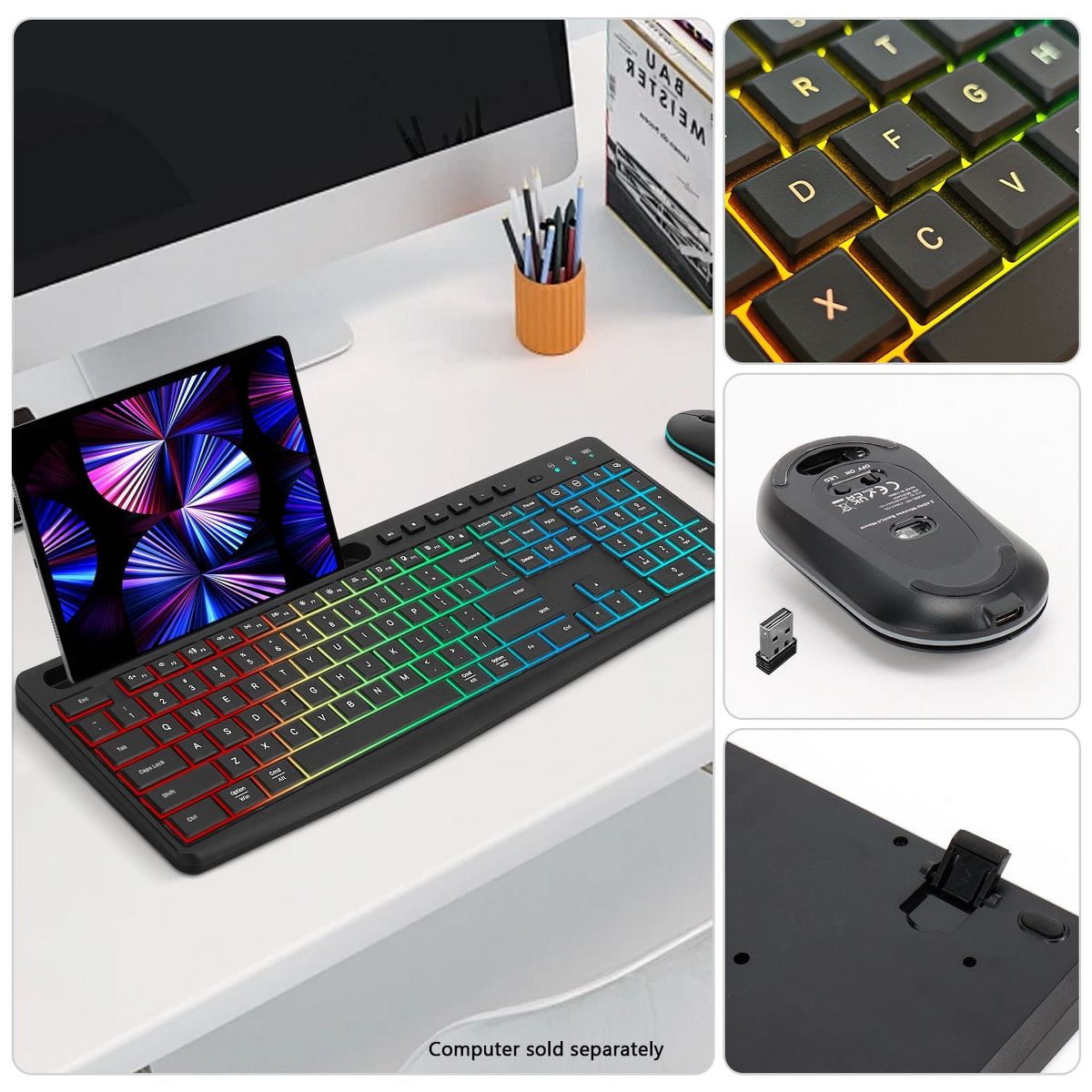 SAHARA - Rechargeable Silent Wireless Keyboard & Mouse Combo - 106 Keys, RGB Backlight - Black