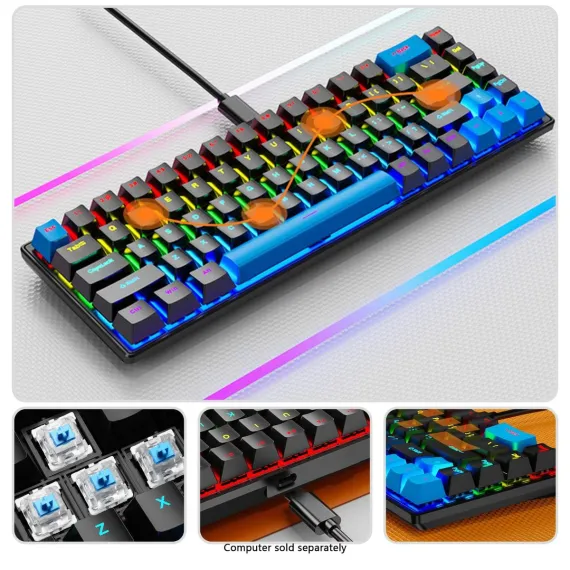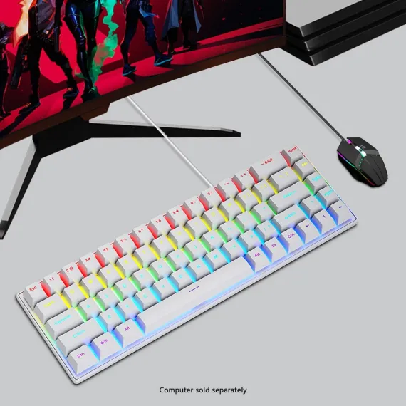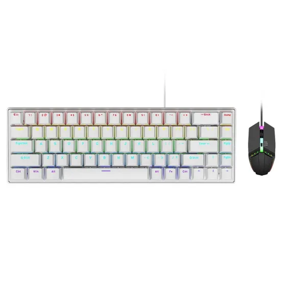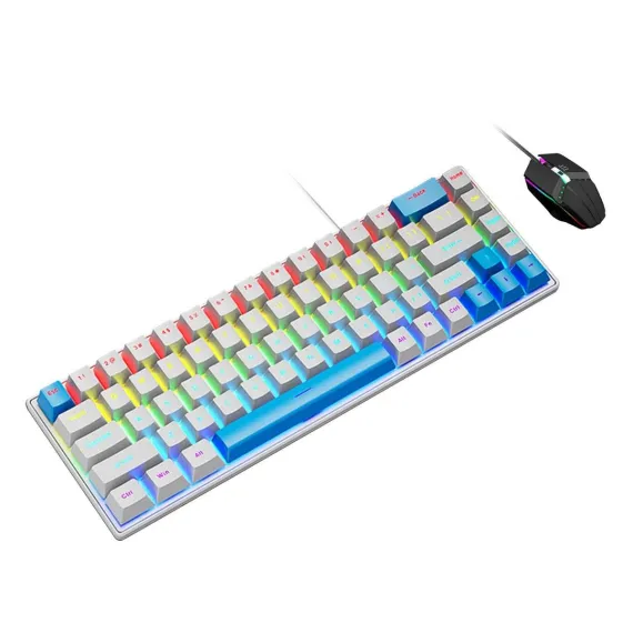 Built for performance and reliability, this Wired Gaming Keyboard & Mouse Combo features a compact 68-key mechanical layout designed for both gaming and professional use. The durable metal panel and cyan mechanical switches deliver tactile precision and long-lasting responsiveness. With 7-RGB backlighting modes, the keyboard adds vibrant visual customization to any setup. Multi-key anti-ghosting and hot-swappable switch support ensure accurate input and easy maintenance, while the ergonomic, waterproof design enhances comfort and durability during extended use.
