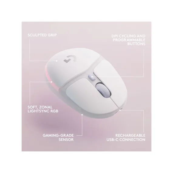 From the Aurora Collection, G705 Wireless Gaming Mouse is purpose-built for smaller hands with compact contoured fit, LIGHTSPEED wireless and Bluetooth connectivity, and advanced gaming technology. At just 85 grams, G705 is designed for long-lasting, lightweight comfort and performance. Gaming-grade sensor, ultra-responsive LIGHTSPEED wireless, and easy-reach DPI-cycling button are ready for your best plays. Immerse yourself in games, music, and movies with ethereal LIGHTSYNC RGB that comes with Aurora Collection signature lighting. Show off your creative side with thousands of customizable lighting combinations available on G HUB. Combine with the full Aurora Collection for a joy-filled play experience.