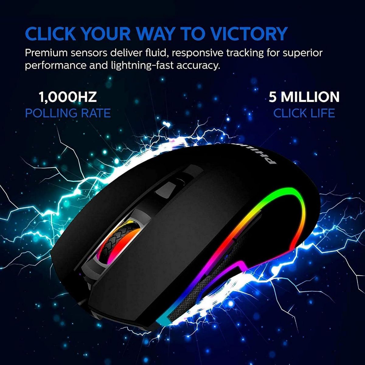 PHILIPS Wired Gaming Mouse, Adjustable DPI Sensitivity, Programmable Buttons RGB Lighting, for Windows/Mac