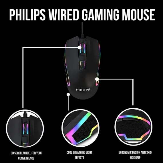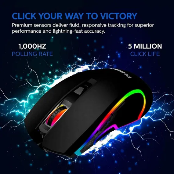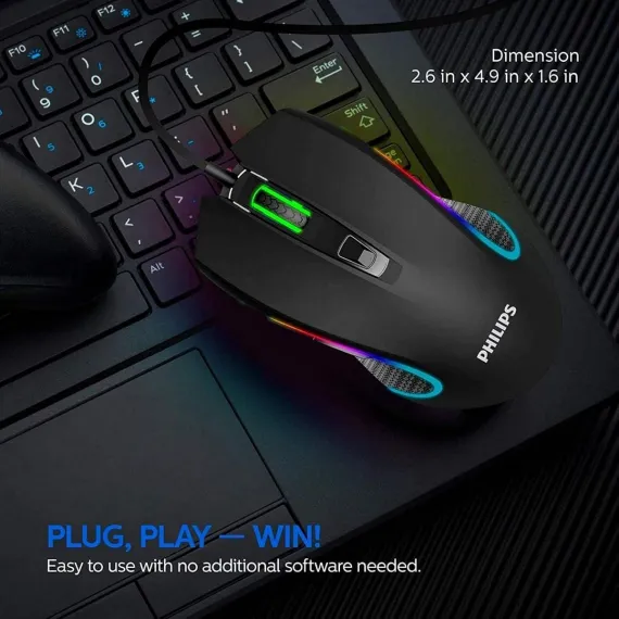 PHILIPS Wired Gaming Mouse, Adjustable DPI Sensitivity, Programmable Buttons RGB Lighting, for Windows/Mac