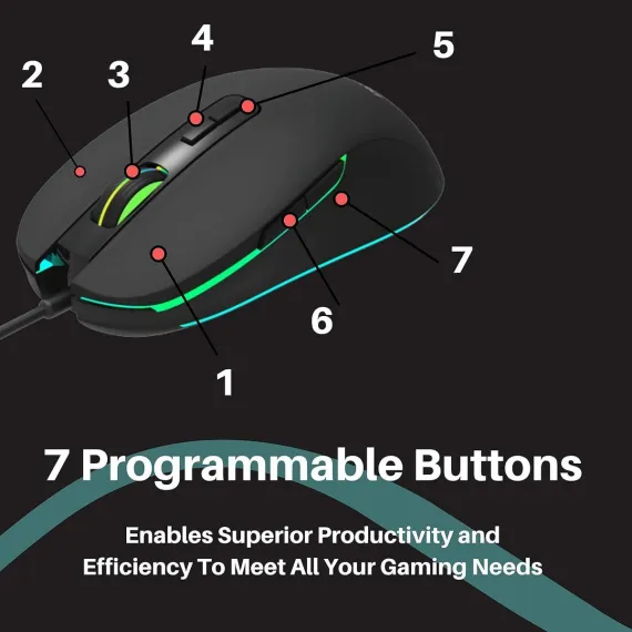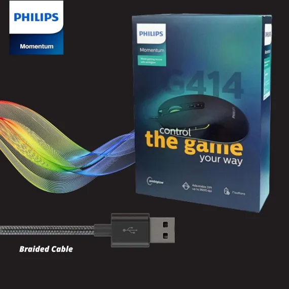 Experience next-level gaming with the PHILIPS SPK9414 Wired RGB Programmable Gaming Mouse. This advanced gaming mouse features 7 programmable buttons, allowing you to customize your gameplay and increase efficiency. With adjustable DPI settings up to 3200, you can achieve precise targeting and quick maneuvers in any game. The ergonomic design ensures comfort during long gaming sessions, while the dynamic RGB lighting with 7 backlight modes enhances your gaming setup. Built for durability, the SPK9414 includes a sturdy braided cable and buttons that last up to 5 million clicks, making it the ultimate gaming companion.
