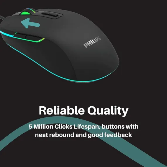 PHILIPS Wired RGB Programmable Gaming Mouse, 7 Programmable Button, Adjustable DPI up to 3200, RGB Lighting