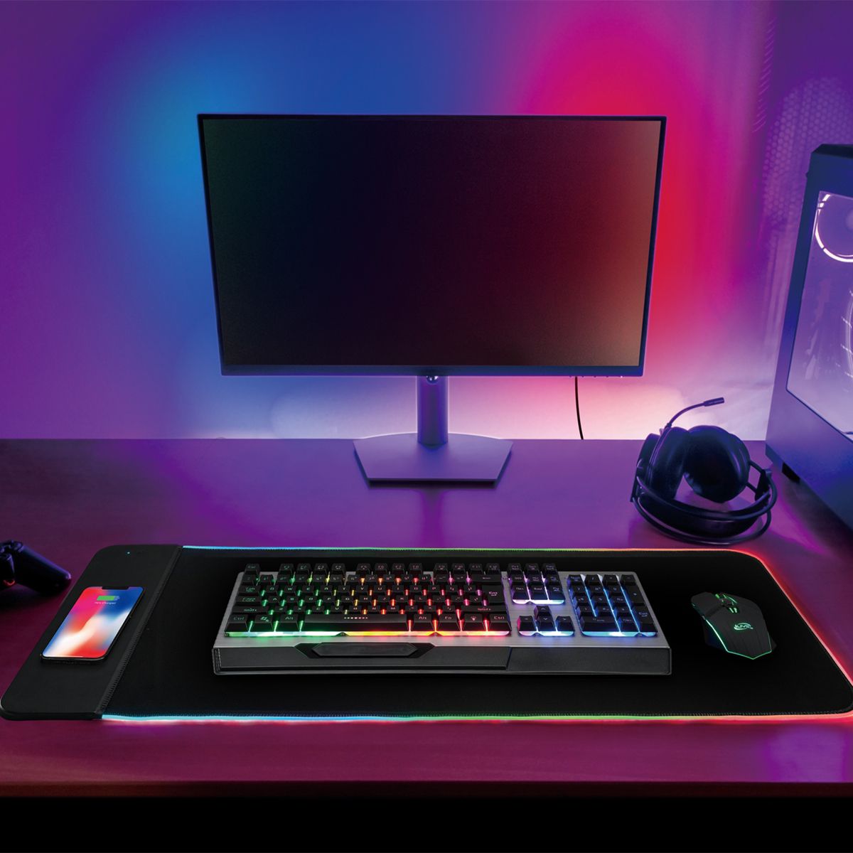 Modern times call for modern solutions, so we put a new twist on an old computer companion! Surf the web, charge your phone and elevate your game all at the same time. This XL wireless charging mouse pad gives you greater flexibility, extra space and fast charging in an attractive package bordered in LEDs.