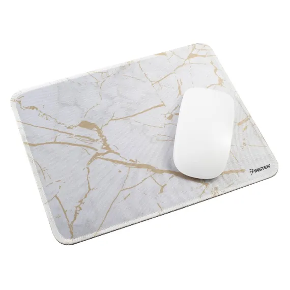 Insten Shiny Marble Mouse Pad, Water-Resistant and Non-Slip Mat for Wired/Wireless Gaming Computer Mouse, 9.45 x 7.48 in, White