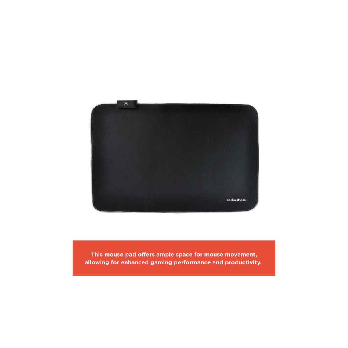 Discover our Mouse Pad RGB (45x35 with RadioShack Logo, Black)—a dynamic and versatile accessory designed to enhance your gaming or work setup with style and functionality. With its vibrant RGB lighting and durable construction, this mouse pad offers a range of features designed to elevate your computing experience to new heights. Immerse yourself in a world of color with the Mouse Pad RGB from RadioShack. Featuring customizable RGB lighting, this mouse pad allows you to create a personalized gaming or work environment that reflects your unique style and preferences. Choose from a spectrum of vibrant colors and dynamic lighting effects to match your mood, game, or workspace aesthetic. In addition, it is crafted with a soft and durable surface, so this mouse pad provides the perfect balance of comfort and functionality. Experience smooth and precise mouse movements with every click and scroll, thanks to the premium quality surface that ensures optimal performance in both gaming and work scenarios. Whether you're engaging in intense gaming sessions or tackling demanding work tasks, the Mouse Pad RGB delivers the durability and comfort you need to stay focused and productive. Its sturdy construction ensures long-lasting performance, while its comfortable surface provides a supportive platform for extended use. Experience the perfect blend of style, functionality, and comfort with the Mouse Pad RGB (45x35 with RadioShack Logo, Black). Whether you're a professional gamer, content creator, or casual user, this mouse pad promises to take your computing experience to new heights. Say hello to vibrant RGB lighting, smooth performance, and lasting comfort—all in one sleek and stylish package.