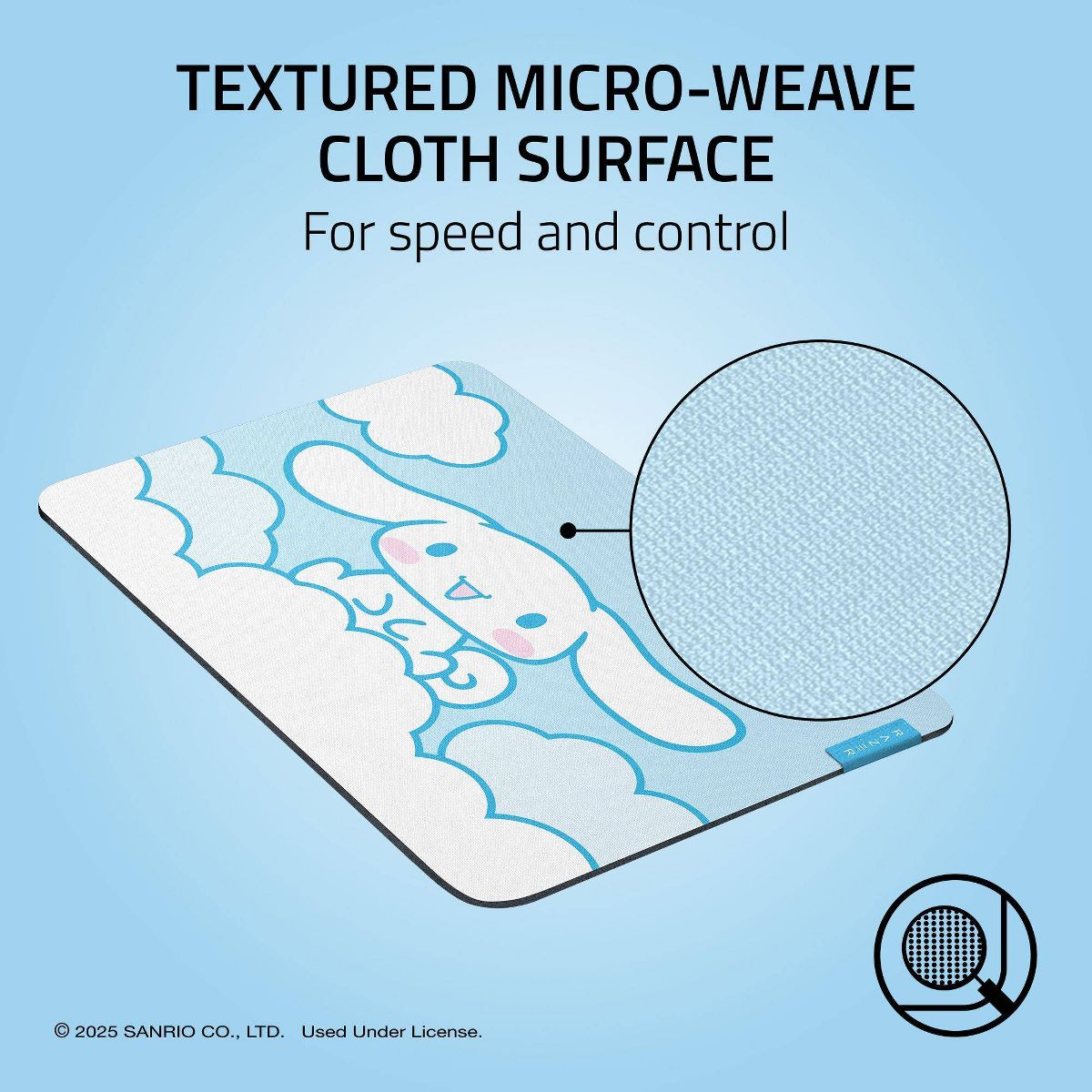 Let every swipe feel like a stroll through fluffy clouds with the Razer Gigantus V2 M Cinnamoroll Edition. Featuring a textured micro-weave cloth surface and soft, cushioned support, enjoy fluid glides, pixel-precise aim, and cozy kawaii vibes in every move.