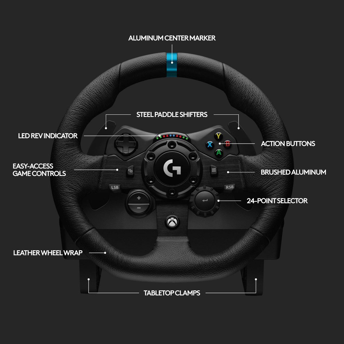 Logitech G923 Racing Wheel and Pedals for Xbox Series X|S, Xbox One and PC: USB Connection, Rubber Grip