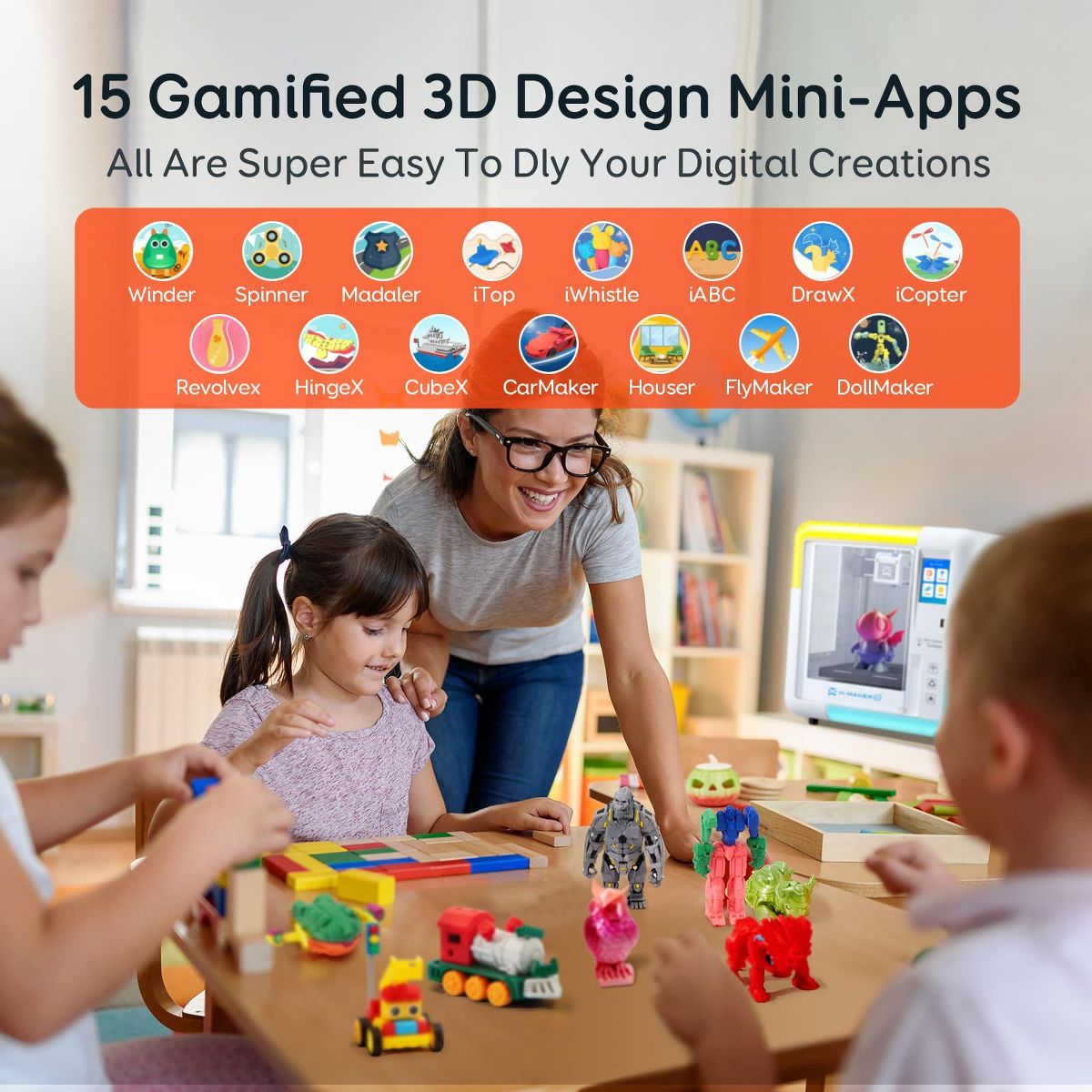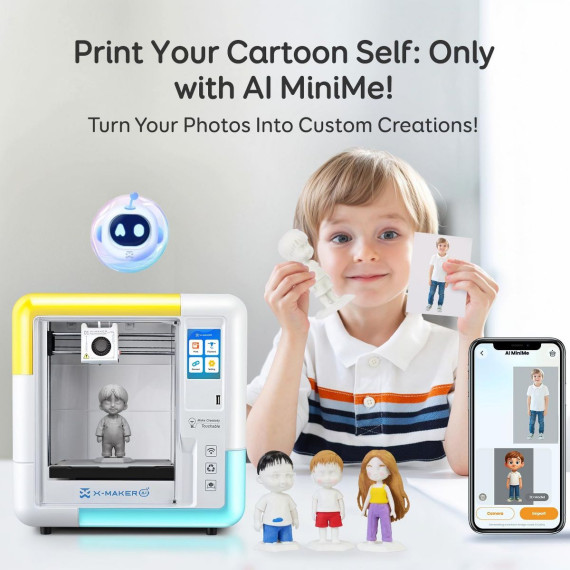 Unlock endless creativity with this fully enclosed 3D printer designed for kids, beginners, and families. A safe, quiet, and user-friendly choice for home learning and early STEM education, it features a 3.5-inch color touch screen, an auto-leveling bed, 15 built-in design apps, and 0.05 mm printing precision. With noise under 50 dB, it makes a fun and educational gift for young creators and curious beginners. 【Available Options】Standard Printer (includes 1 filament); AI Printer (includes 1 filament); AI Printer + 4 Filaments; Standard Printer + 8 Filaments. Filament quantity varies by selected option—please review before checkout.