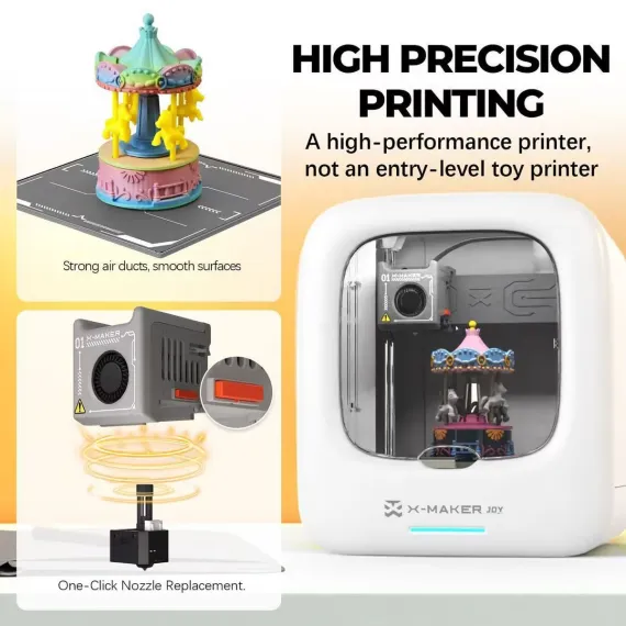Bring imagination to life with the JOY 3D printer, a kid-friendly and family-focused creative tool designed to inspire hands-on learning through play. With 1,500+ printable models, 15+ mini design apps, and 0.05 mm printing precision, it encourages creativity, problem-solving, and early STEM education in a fun and approachable way. The fully enclosed design, built-in HD camera, and plug-and-play setup make it safe and easy for kids and parents to explore together at home. Quiet, compact, and thoughtfully designed, JOY makes a meaningful STEAM toy and gift for birthdays, holidays, and family learning time. 【Available Options】Standard JOY Printer (includes 1 filament); AI JOY Printer (includes 1 filament); AI JOY Printer + 4 Filaments; Standard JOY Printer + 8 Filaments. Filament quantity varies by selected option—please review before checkout.