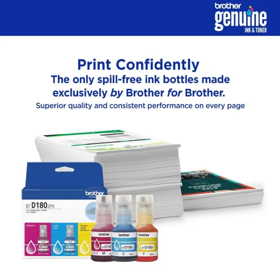 Brother Genuine BTD1803PK 3-Pack High Yield Cyan, Magenta, and Yellow Ink Bottles (for use with 580, 780, and 980 Printers)