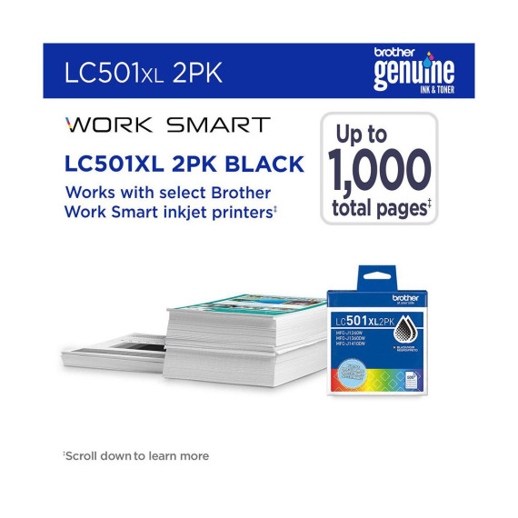 The Brother Genuine LC501XL3PK is a high-yield color ink cartridge 3-pack designed to deliver vibrant, reliable, and consistent color output. This pack includes one each of cyan, magenta, and yellow ink cartridges, each with a page yield of up to 500 pages‡. Ideal for producing high-quality photos, color documents, and graphics, these genuine Brother cartridges are specially engineered to work seamlessly with compatible Brother Work Smart series inkjet printers.
