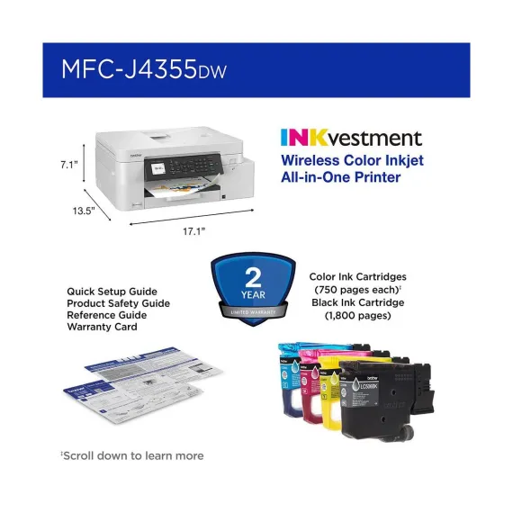• Product: Brother MFC-J4355DW INKvestment Tank All-in-One Printer