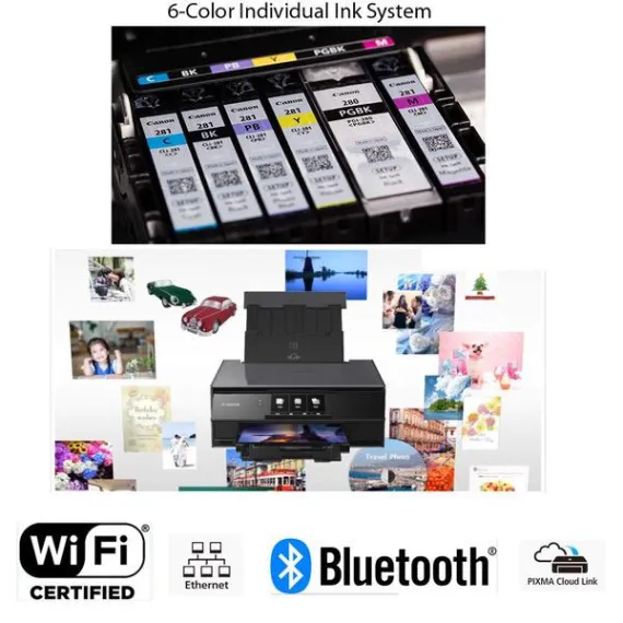 Canon Pixma TS9120 Wireless Inkjet All-in one Printer (Gray) with Scan, Copy, Mobile Printing, Airprint & Google Cloud + Set of Ink Tanks + Photo Paper Sample + USB Printer Cable + HeroFiber Cloth