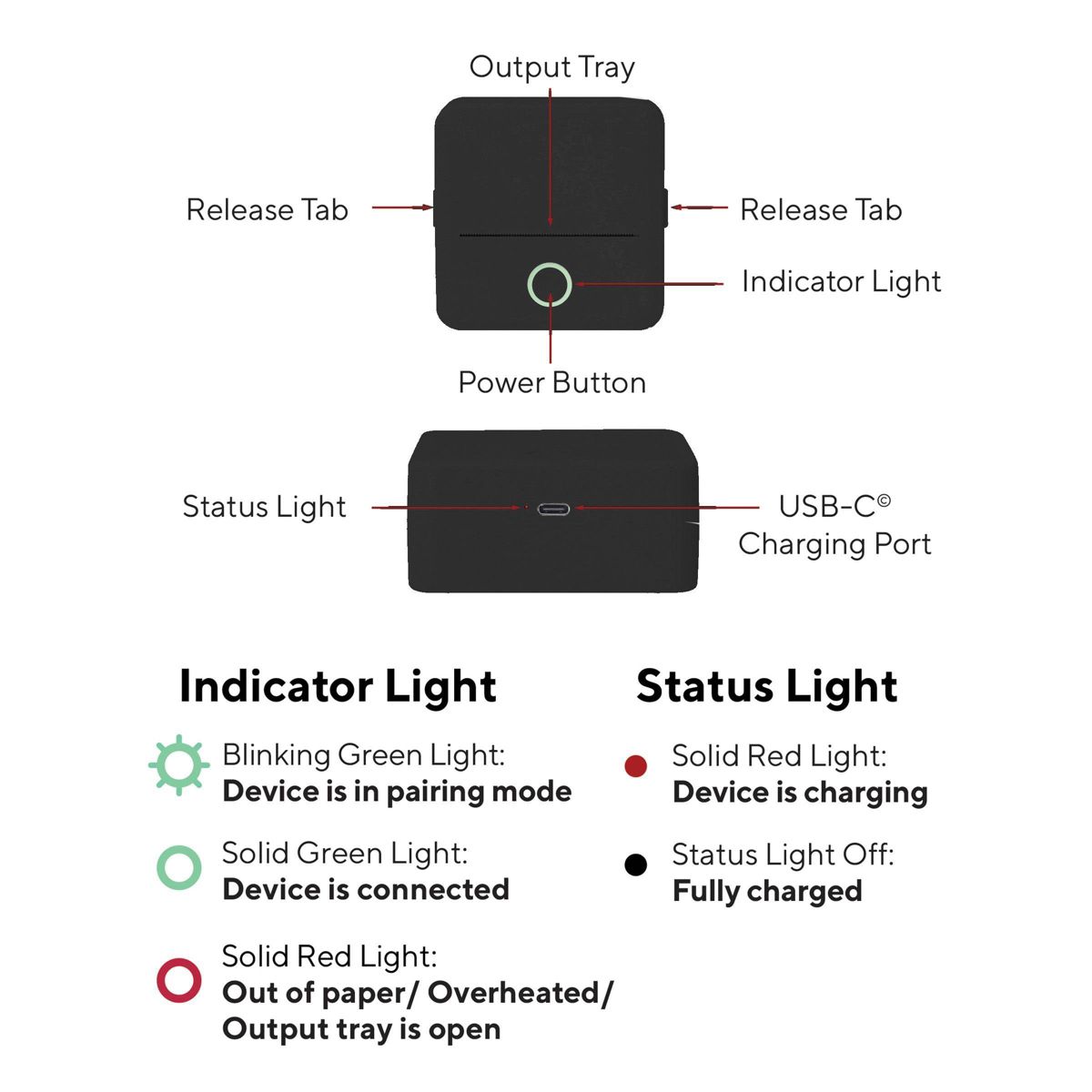 Introducing the Core Innovations Wireless Portable Thermal Printer, the perfect inkless printer for on-the-go! With one-click printing, you can print photos, designs, labels, receipts, banners, and more - instantly and easily! This sleek, lightweight pocket-sized printer is designed to go anywhere you do. Our portable thermal printer connects to your iOS & Android devices via Bluetooth with ease. Its monochrome thermal printing technology ensures high-quality, smudge-free prints without messy ink or toner. The long-lasting rechargeable battery keeps you printing continuously for up to 2 hours. Our user-friendly app – available on the App Store and Google Play – gives you customizable print options, templates, filter effects, border options, stickers and a variety of print sizes. With easy-to-use directions and outstanding portability, the Core Innovations Wireless Portable Thermal Printer is your go-to printing resource for home, work or school. Create, print, and share effortlessly and quickly wherever you roam!