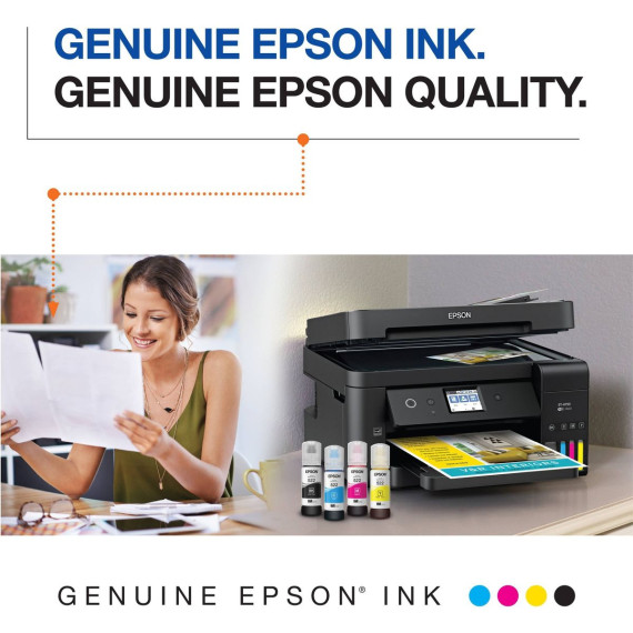 Epson’s EcoTank replacement ink bottles deliver thousands of pages, plus genuine Epson quality. Save up to 90 percent on ink with low-cost replacement ink bottles vs. ink cartridges. Plus, exclusive, uniquely keyed EcoFit bottles make it easy to fill each color tank.
