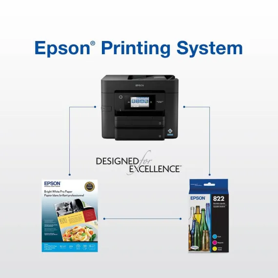 Epson DURABrite Ultra T822XL High-capacity ink cartridges are ideal for high-volume print applications. Formulated with fast-drying pigment ink designed for high-speed print jobs, Epson DURABrite Ultra High-capacity ink cartridges deliver sharp text, bright colors and print-shop-quality results. Epson printing system is designed to be used exclusively with Epson Genuine Cartridges. Use of non-genuine ink could cause damage not covered under the printer’s limited warranty.