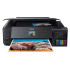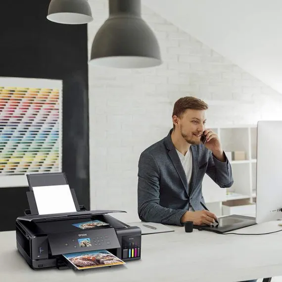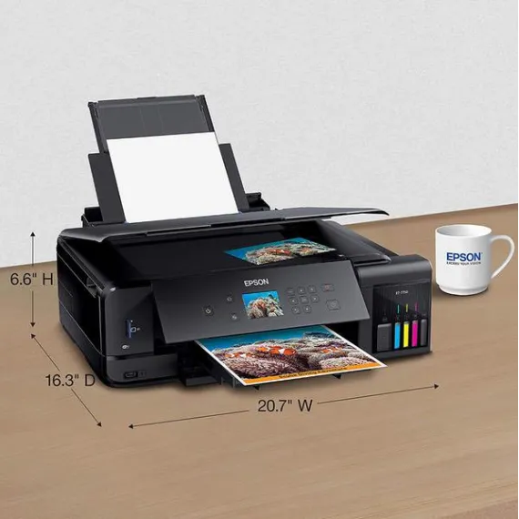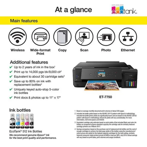 [Edit One Year Later: I still have about 1/3 of all my original ink tanks. Holy cow. I would normally have had to replace them 3 or 4 times at least by now. AND I still have the 2nd set of ink bottles that came with it originally. I am thrilled with the ink savings. Ive had a little bit of trouble keeping the ink heads perfectly clean. so I get those lines in my prints sometimes.] Ive had HP Officejets, a couple of Epson Stylus 800s from a decade ago, several Epson 4630s and recently two 4740s. I blasted the 4740s in my review of that printer. Both of them ran out of ink after about 375 pages and replacing the ink was going to run me $160. Ridiculous. So I was ready to swear off Epson forever. But then I saw this baby get announced. The idea of paying through the nose up front, but being able to print worry-free thereafter, well, it sounds fantastic. At least on paper. Ive only had this printer for a couple days, but so far Im very impressed and hopeful. Its a joy as you literally POUR fairly gigantic bottles of ink into this thing. And I dont know if this is universal, but mine included a full second round of ink bottles. It at least seems like Im swimming in ink now. This new incarnation of EcoTank is pretty slick. The bottles are designed so you cant connect them to the wrong spot and I couldnt find a way to make them spill. They only open up when theyre connected to their proper slot. Then they stop automatically when the tank gets full. They gave me enough that even after charging I still had a tiny bit of ink left over. And a full second round of ink that I didnt even touch yet. Ive only printed one 4x6 photo so far, but it is as good as Ive had printed at the store. The one thing Im tempted to complain about is the drawer system. At first I thought I would need an advanced degree to figure out how to use them. Once you see how they work, its not too complex, and its definitely ingenious. They find a way for you to have a separate drawer for normal sized paper, a smaller drawer for photo prints, and even a CD printing tray. But theyre super small. And theyre very close together. And awkward to get to. And hard to put paper into. And the output tray feels like youre breaking it when you open it. So I admire the way theyve packed so much into such a very small space. But I suppose in the end Id rather make this thing an inch or two taller in exchange for a little more room to work with those trays. So if my photos attach correctly . . . it looks pretty good. But that tray system: -I believe the top part is where the CD tray goes. -Below that is the paper output tray -Then the tiny little tray for 4x6s and such -Then the "main" paper tray for letter size and such. -You can see theres not much room to work in there, and when you extend the output tray, you cant access them at all. -Again, its actually very workable. But if youre burning through 500 sheets regularly, this isnt for you. However, my wife really likes how "small" it is. Its obviously wider than our other printers, but to her it seems more compact. I agree. Its wider, but very low profile. And it looks good when you close up the paper drawer and fold down the screen. I guess its made for less frequent, but higher quality printing than our other Workforce Pro types. So thats my ramble. I LOVE the idea. Ill have to check back in a year or two to see if the whole thing malfunctions or fails to last long enough for it to be worth the gigantic upfront cost. But for now it seems pretty awesome.
