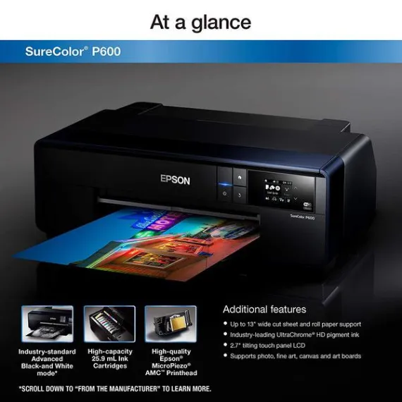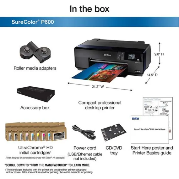 Epson SureColor P600 Inkjet Printer and Epson T760520 UltraChrome HD Light Cyan/Light Cyan/Light Black/Matte Black/Photo Black/Yellow/Light Light Black/ Standard Capacity Cartridge Ink/ Vivid Light Magenta/ Vivid Magenta
