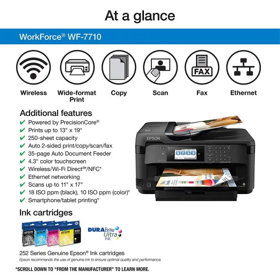 Epson (WF-7710) Inkjet Printer with C/M/Y Standard Capacity Cartridges