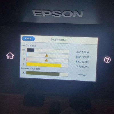 Really dislike this ink guzzler, the cartiage are always full and it's saying it's empty litterly from day to day one day it's full the next it's saying empty , have to constantly run cleaning heads wasting ink I really really Hate this printer Yes it's all Epson Ink , and just replaced a half full yellow because it wouldn't take then immediately now it's saying blue and pink are out and They are Absolutely NOT out