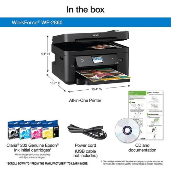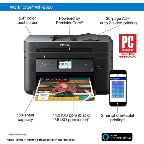 Epson Workforce WF-2860 All-in-One Wireless Color Printer with Scanner, Copier, Fax, Ethernet, Wi-Fi Direct and NFC, Amazon Dash Replenishment Enabled