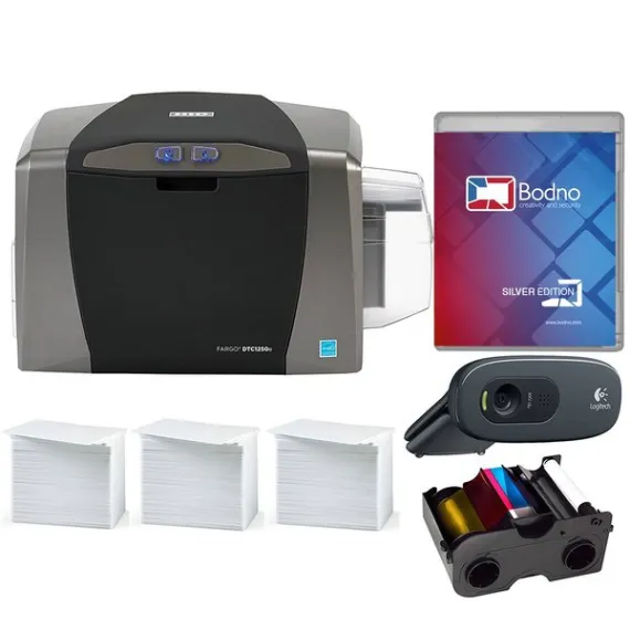 Fargo DTC1250e ID Card Printer & Complete Supplies Package with Bodno Software