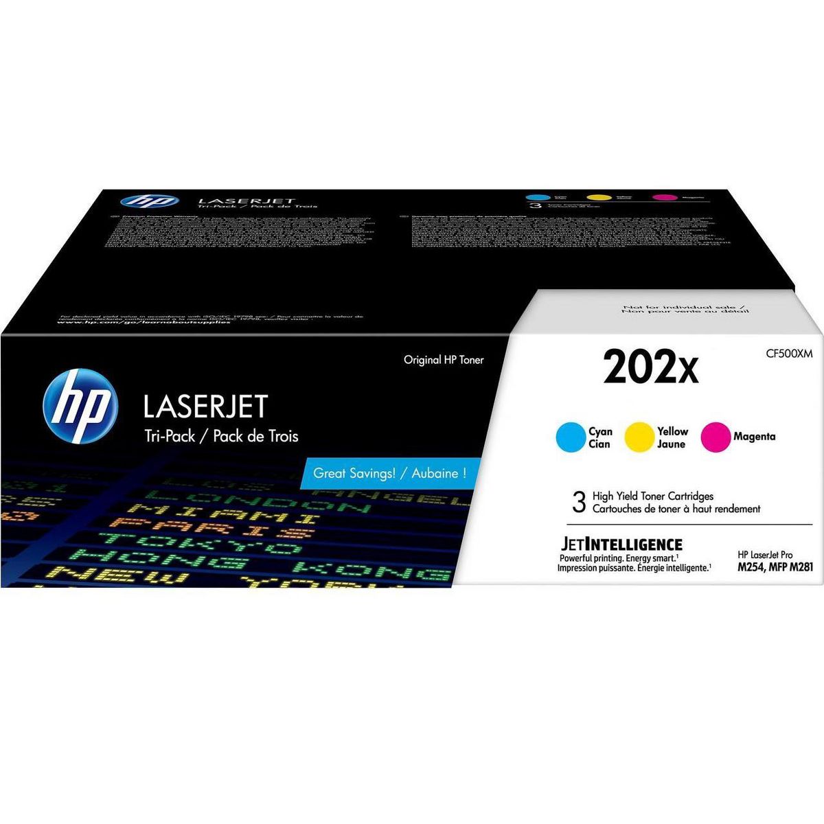 HP 202X CF500XM 3 High Yield Toner Cartridge: Cyan, Magenta & Yellow