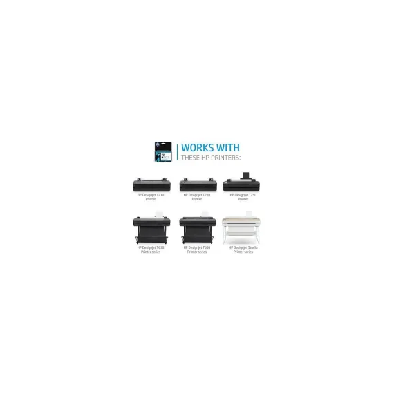 Overview - You're ready to meet every last-minute deadline with Original HP Bright Office Inks designed to fit the way you work by performing reliably, maximizing printhead life, and helping ensure HP warranty protection. Features Outstanding line quality, details, and letters - Prevent miscommunication—get outstanding patterns and line quality, with up to 31% more accurate lines. Bright and distinguishable colors - See distinct color/features on maps, plans with brightest dye-based color inks, with up to 65% more gamut. Durable/reliable performance, and recyclable - 100-year plain-paper archivability and ISO certified HP Permanent and Water-resistant Black Ink. Disclaimers - Up to 31% more line accuracy based on HP internal testing, September 2019 of 1 pixel vertical line straightness comparing prints from the HP DesignJet Studio/T600/T200 Printer series and Canon TM-305 Printer on plain paper using equivalent fast/draft print modes. - Based on HP internal testing, September 2019, of 1 pixel vertical and diagonal lines; average of cyan, magenta, yellow, red, green, and blue colors and blacks comparing prints from the HP DesignJet Studio/T600/T200 Printer series and Canon TM-305 Printer on Oce 75gsm plain paper using equivalent fast/draft print modes. - Based on HP internal testing, September 2019, of 0.3 pixel dark gray and gray vertical lines spaced at 0.45 mm, 0.6 mm, and 0.75 mm apart, and lines of square spaced 0.6 mm apart comparing prints from the HP DesignJet Studio/T600/T200 Printer series and Canon TM-305 Printer on Oce 75gsm plain paper using equivalent fast/draft print modes. - Up to 65% more color gamut based on HP internal testing, September 2019, of gamut volume comparing prints from the HP DesignJet Studio/T600/T200 Printer series and Canon TM-305 Printer on Oce 75gsm plain paper using equivalent fast/draft print modes. - Based on HP internal testing, September 2019, of cyan C* and cyan saturation comparing prints from the HP DesignJet Studio/T600/T200 Printer series and Canon TM-305 Printer on Oce 75gsm plain paper using equivalent fast/draft print modes. - Visit http://www.hp.com/recycle to see how to participate and for HP Planet Partners program features and availability; program may not be available in your area. - For prints produced with pigment-based black and dye-based color HP Bright Office Inks. WIR Statement Concerning the Dark Storage Permanence of Documents Printed with HP Pigment Inks and Dye Inks on HP Bright White Inkjet Paper, October 2017. Tests conducted by Wilhelm Imaging Research, Inc. indicate that documents printed with HP pigment-based black and dye-based color inks printed on HP Bright White Inkjet Paper stored in the dark (assuming that the document is stored in a file folder, in a box, and is otherwise protected from possible ozone exposure and contact with water) will achieve WIR Dark Storage Permanence Ratings of “Greater than 100 Years.” For more information, - For prints produced with HP Permanent and Water-resistant Black Ink. HP Bright Office Inks are certified per the ISO 11798 Permanence and Durability standard, proving that prints made with compatible HP DesignJet T-series printers using Original HP Bright Office Inks withstand harsh exposure to light, water, abrasion, and handling, and long-term storage and heat, and remain legible in the future. For more information, - Based on HP internal testing, January 2020, comparing the HP DesignJet T200 Printer, that uses the same ink and print mode as the HP DesignJet Studio/T600 Printer series, and Canon TM-200 and TM-300 Printers in terms of ink used during routine printhead cleanings.