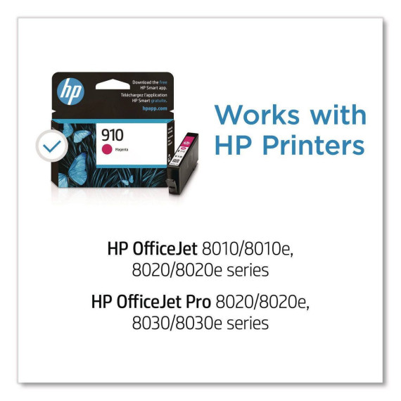The Original HP 910 Magenta Ink cartridge yields approximately 315 pages. For a greater value, consider the Original HP 910XL high yield ink cartridge to print more and save more.
