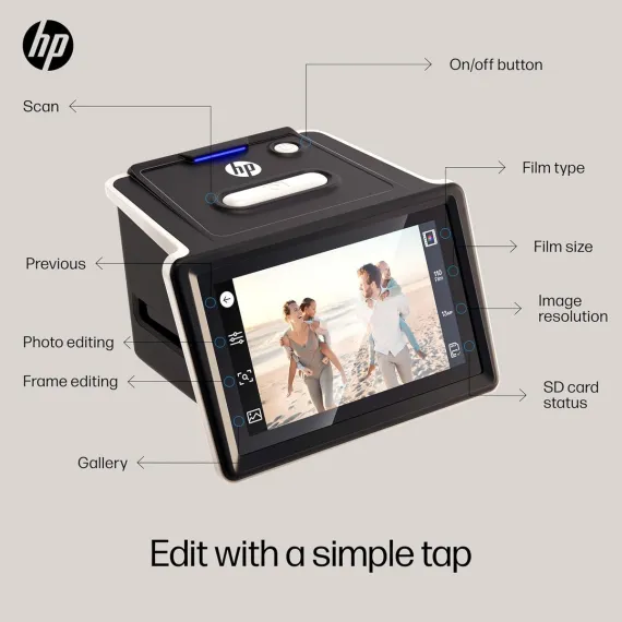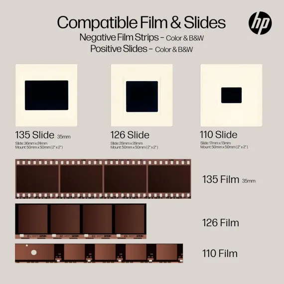HP FilmScan Film & Slide Scanner with 5" Touch Screen, Film Scanner Convert Negatives to Digital 22MP JPEG