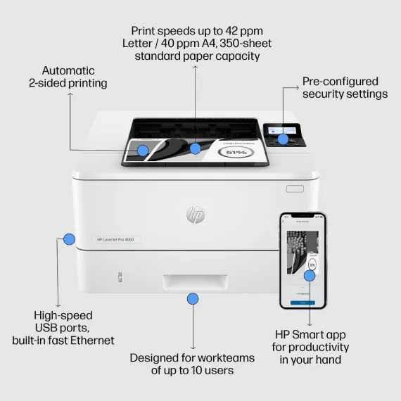 HP LaserJet Pro 4001dn Laser Printer, Black And White Mobile Print Up to 80,000